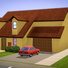 Het huis heeft een oprit en een garage. De garage staat vol met spullen en is een complete bende, zoals dat meestal het geval is. Als je de voordeur opendoet, loop je direct de hal binnen. Aan de linkerzijde kun je kiezen om naar boven te gaan, of naar beneden naar de kelder. Recht vooruit is de woonkamer. En rechts is de deur die naar de garage gaat. In de woonkamer heb je toegang tot de keuken, en vanuit daar kun je of naar de tuin gaan, of naar de garage. De achtertuin heeft een fontein, een ontspanstoel, en een schuurtje. De schuur heeft planken met wat rommel erop.