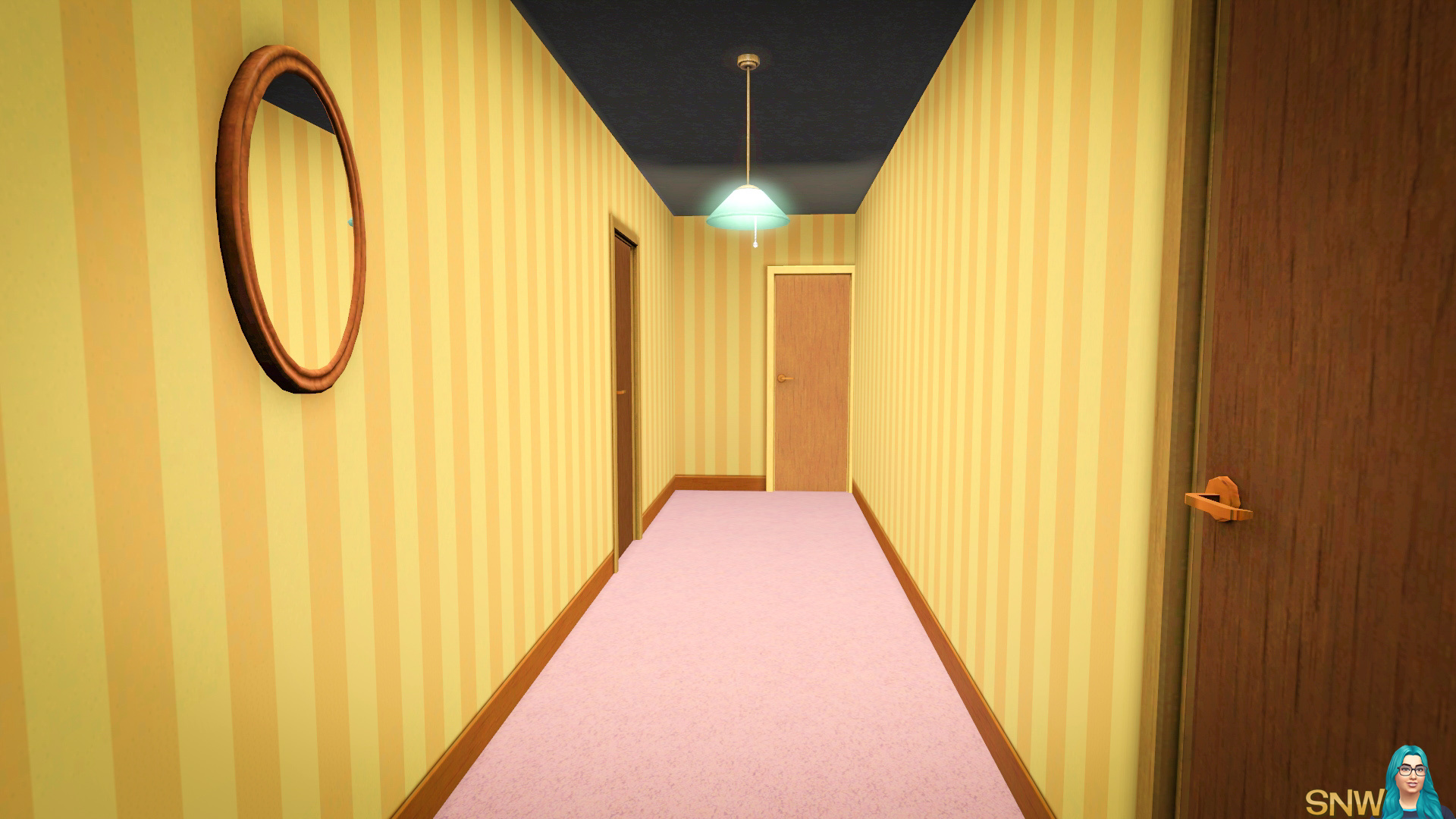 Boven kom je in de gang terecht waar je toegang hebt tot de slaapkamer, badkamer, en Jon's kantoor. De kelder heeft maar een kamer, wat eigenlijk gewoon een washok is.