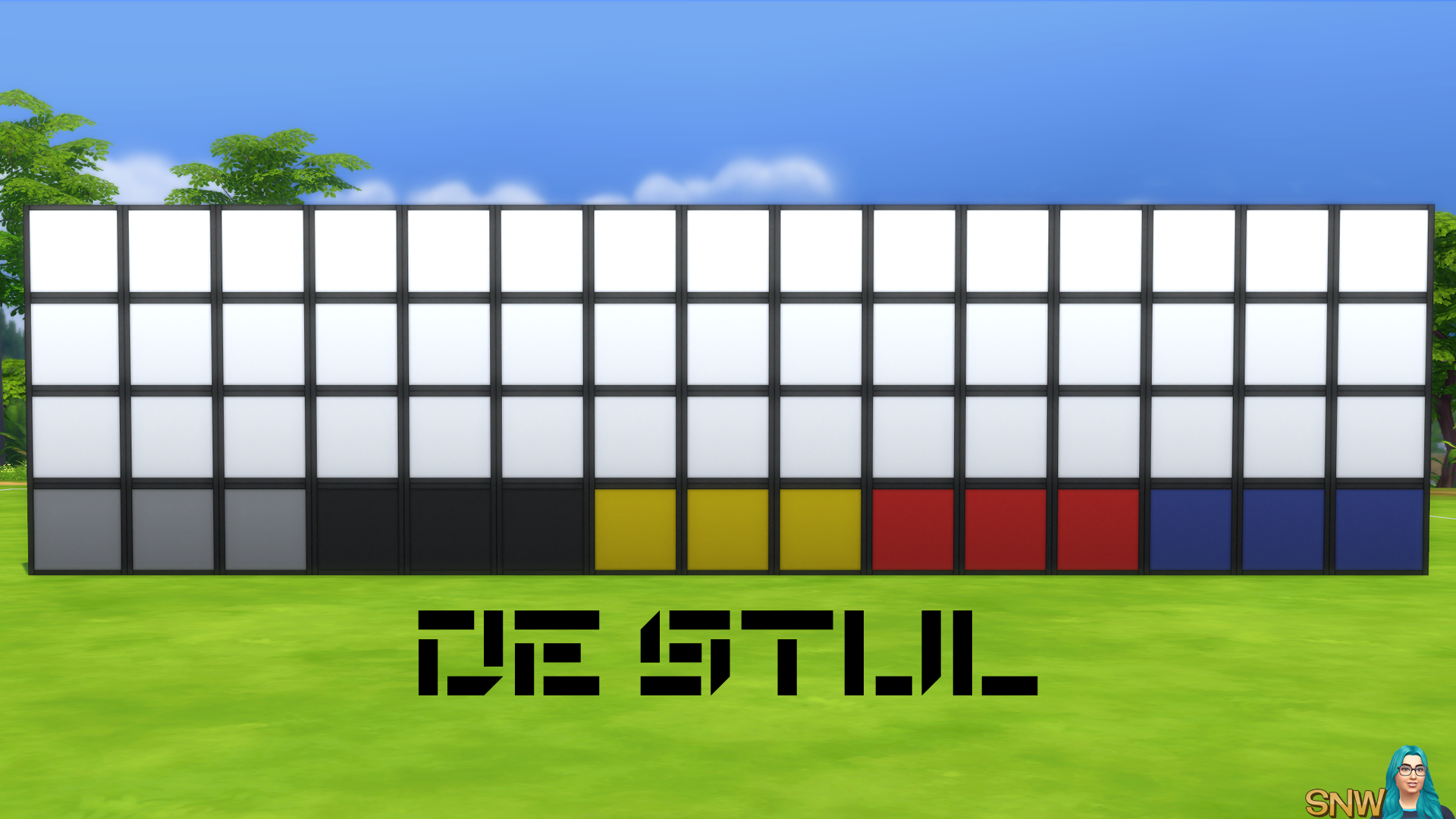 Ik heb een grote set muren, vloeren, deuren, en ramen gemaakt, zodat we ook van "De Stijl" kunnen genieten in ons spel!