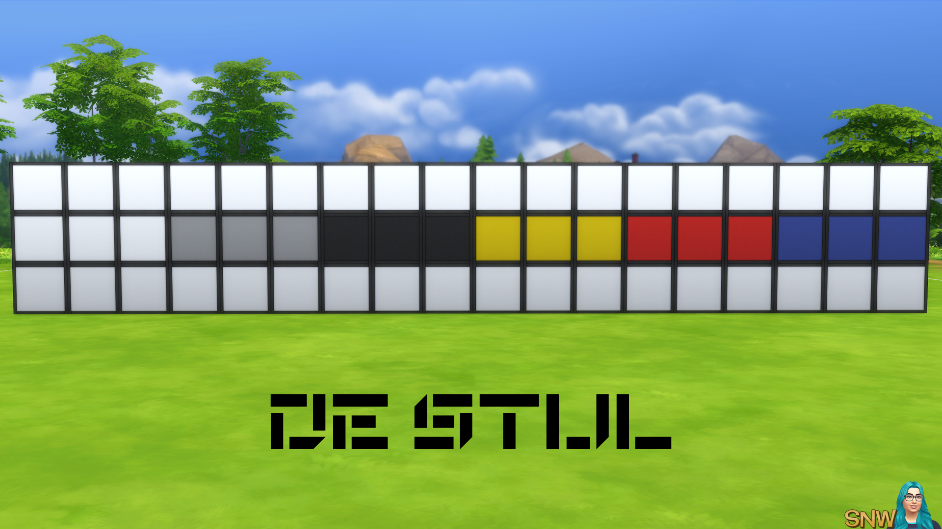Ik heb een grote set muren, vloeren, deuren, en ramen gemaakt, zodat we ook van "De Stijl" kunnen genieten in ons spel!