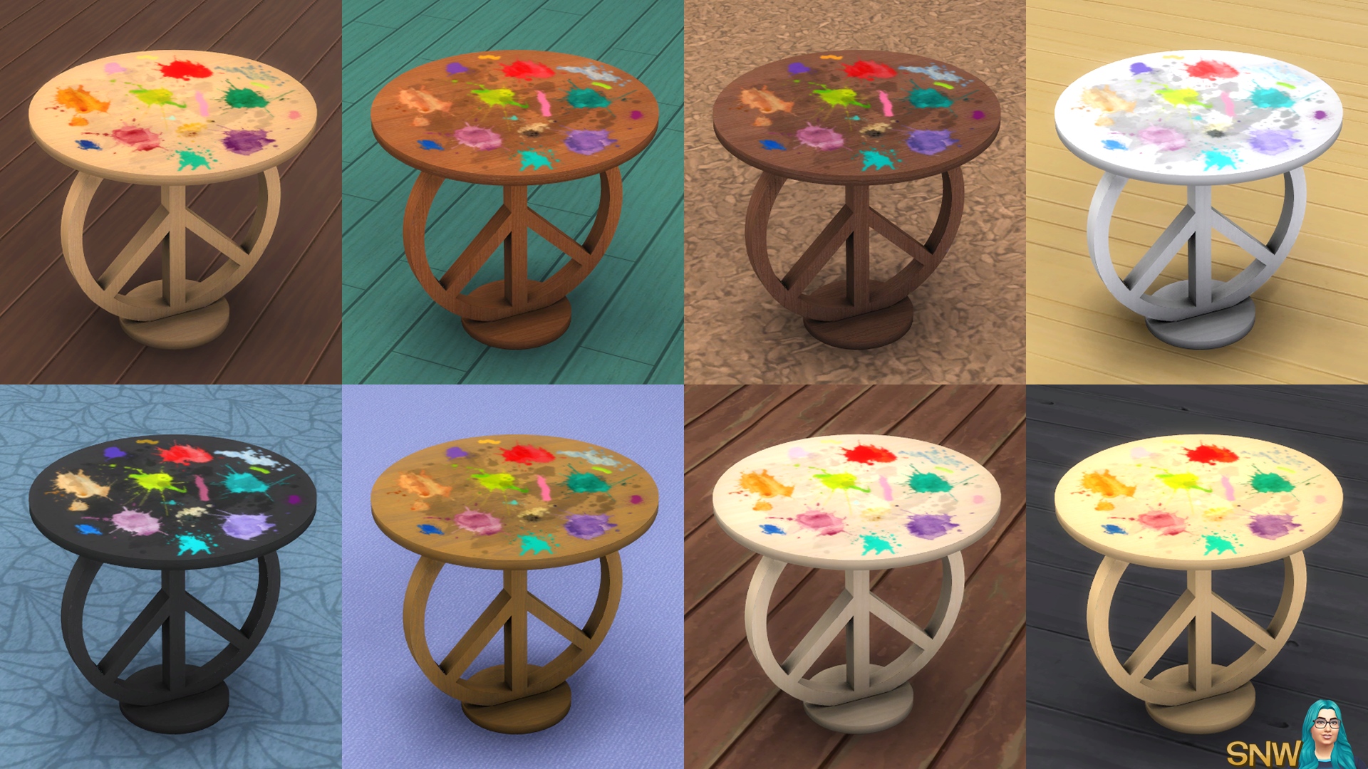 Ik begon met dit bijzettafeltje in de zomer van 2017. Ik was best wel tevreden met het resultaat. En er waren toen al 40 kleuropties. Maar, ik wou een heel grote Hippie set maken voordat ik het zou gaan uploaden. Alleen toen kwam er iets tussen waardoor ik de rest van de items niet kon afmaken (was er dus wel mee bezig). En vervolgens heb ik het tafeltje nooit meer geupload! Ik vroeg pas geleden aan mijn volgers op mijn Nederlandse Twitchkanaal en Instagram om suggesties. En met de feedback die ik heb ontvangen, heb ik nog 24 kleuropties gemaakt haha! Oeps... Dus dat betekent dat er nu in totaal 64 kleuropties zijn.