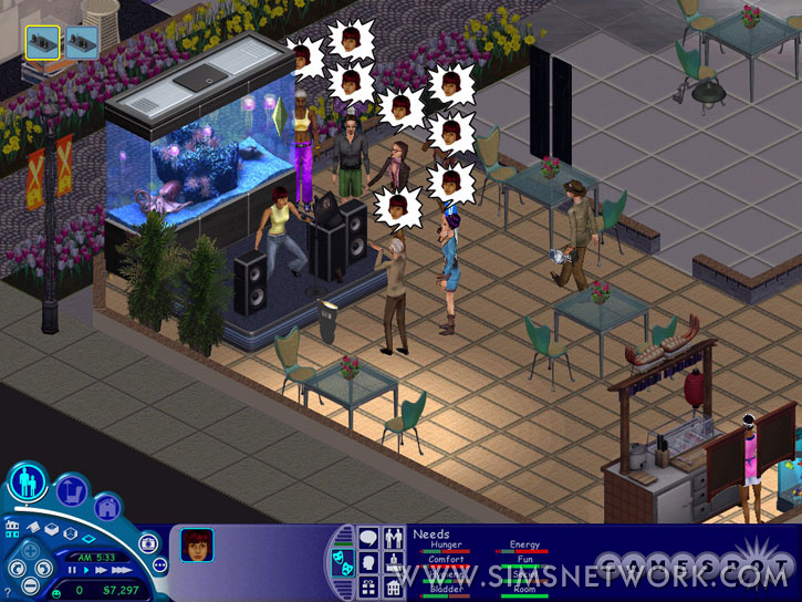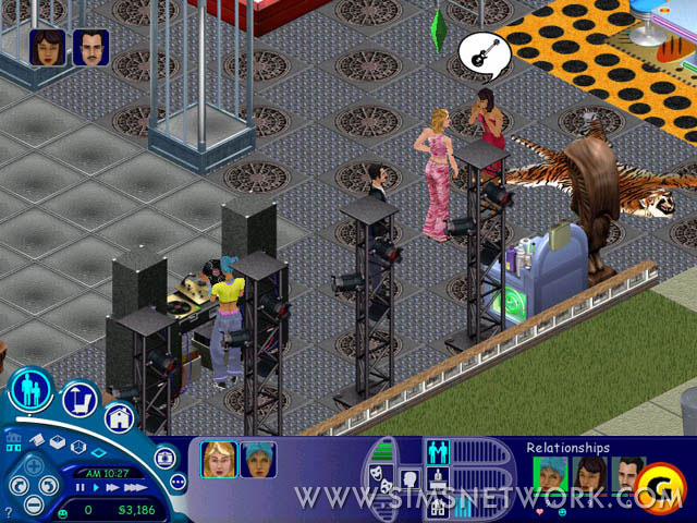 In The Sims, you took charge of Sims (simulated people) by selecting one of the default families, or designing one yourself. With brand-new families, you could create up to four characters in one house; you could slightly alter their personalities and appearances by choosing among a few preset features and body types, and you could allocate points to the attributes that govern your Sims' neatness, playfulness, and activity (among other traits). After that, you used a set budget to build or purchase a house, furnish it, and begin your life. Of course, moving into a new home wasn't easy, and the things that you could afford off the bat weren't always the nicest or most luxurious. Each purchasing sacrifice, whether it was to get the single bed instead of the gorgeous fluffy double, or to get the small TV instead of the widescreen plasma, would be reflected in the way those activities affected your mood meter. You could have a good time shooting hoops with a couple of your friends, but it was nothing compared to playing a few games on the $4,000 Aristoscratch pool table.