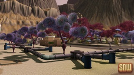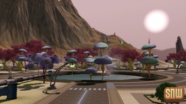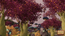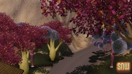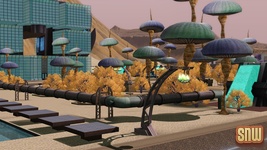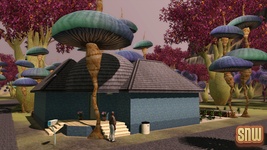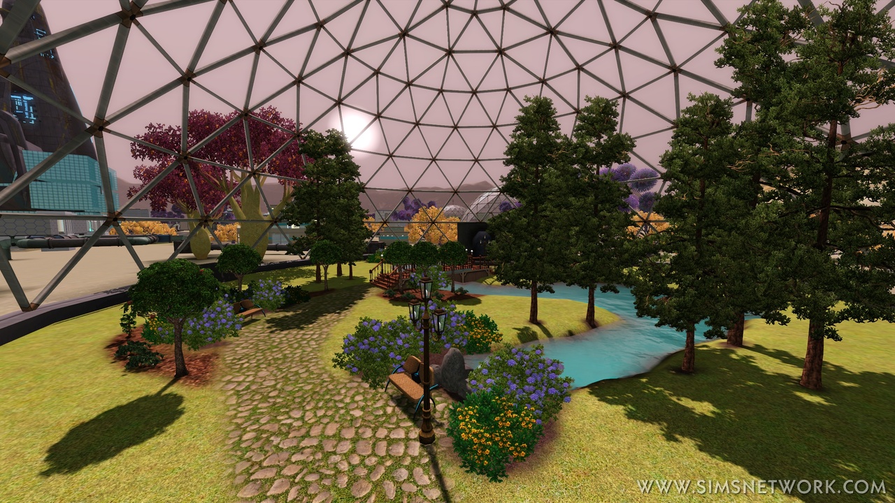 Ik wil graag EA bedanken voor de kans om Lunar Lakes te spelen en te reviewen. Ik moet zeggen dat ik sowieso al uitkeek naar Lunar Lakes. Het is niet zo dat ik groene werelden niet mooi vind, maar het is wel een keertje verfrissend om een totaal anders ogende wereld te hebben. Op de een of andere manier verwachtte ik wel aliens in deze wereld. Maar die ben ik niet tegengekomen? Natuurlijk kunnen we altijd zelf nog alienachtige Sims maken. De omgeving is geweldig. Ik vind de kleurrijke bomen ook zo mooi. Het deed me direct denken aan Spore! Het spaceachtige, sci-fi thema in de wereld vind ik ook cool. Maar ik was een klein beetje teleurgesteld toen ik zag dat zo'n beetje alle carrieregebouwen (de rabbitholes) er hetzelfde uitzien. Aangezien ze er allemaal hetzelfde uitzien, is het ook moeilijk om ze uit elkaar te houden. Zoals altijd ben ik eerlijk in mijn reviews en dit was gewoon iets dat ik minder vond. Het was al beter geweest als er iets van een logo per gebouw op had gezeten. Hoe dan ook ben ik erg tevreden met deze wereld. Ik kan niet wachten tot ik er zelf mee kan gaan spelen en mijn eigen Sims erin zal plaatsen, en wellicht ook wat alienfamilies haha.