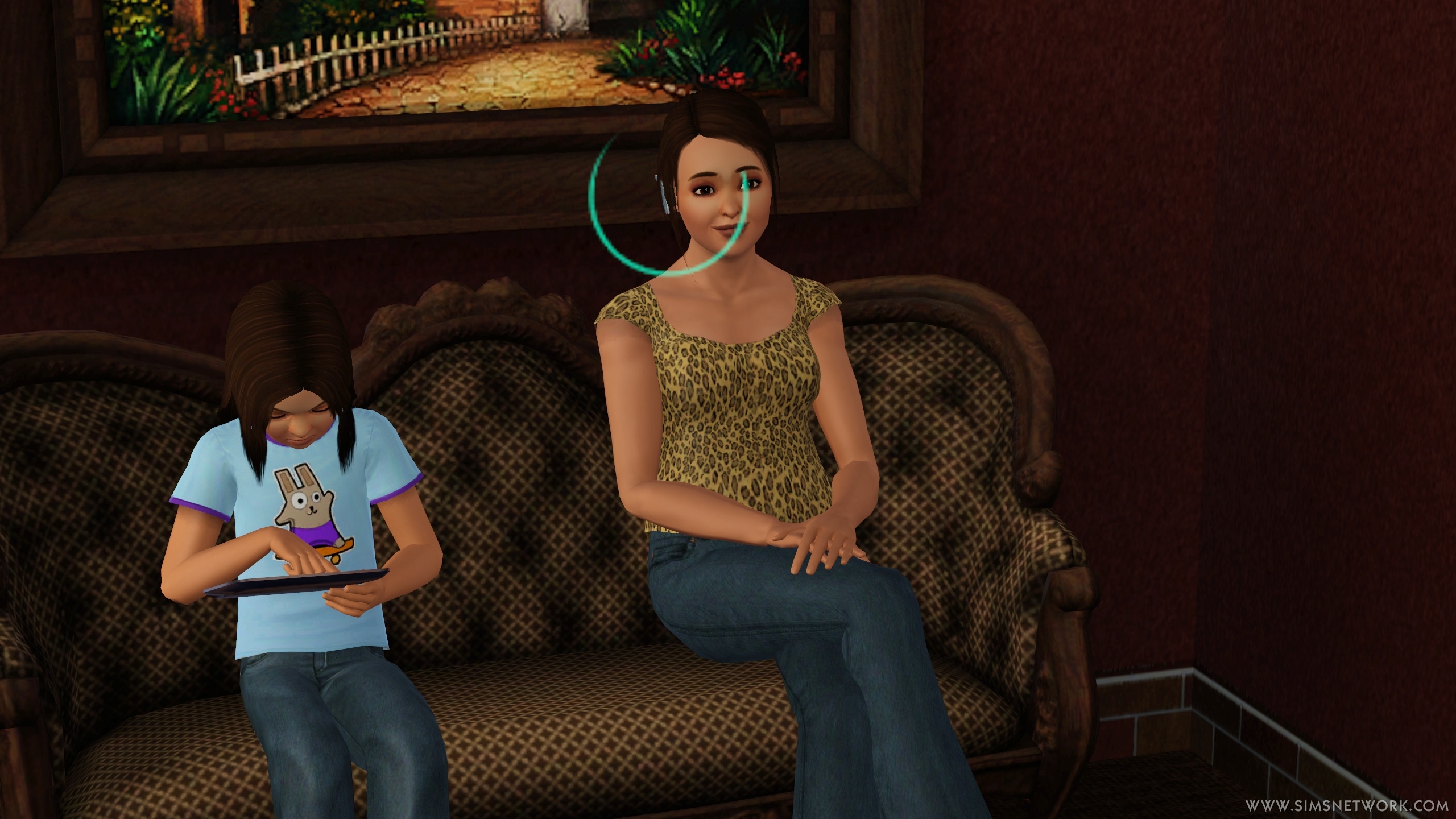 Als een Sim naar een Tabcast luistert, kun je dat op de achtergrond horen: