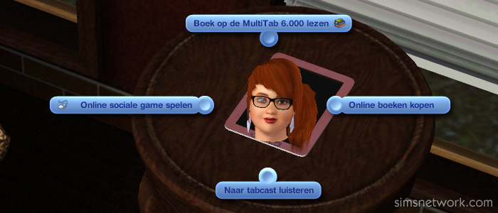 Dan is er Online boeken kopen. Kinderen kunnen dit niet, maar tieners en ouder kunnen dus boeken kopen met de MultiTab. Het werkt hetzelfde als wanneer je Sims naar een boekenwinkel gaan. Je krijgt hetzelfde menu en alles. Als je een boek op deze manier koopt, kun je nog steeds de fysieke versie lezen. Je hoeft dat dus niet op de MultiTab te doen, maar het kan wel.