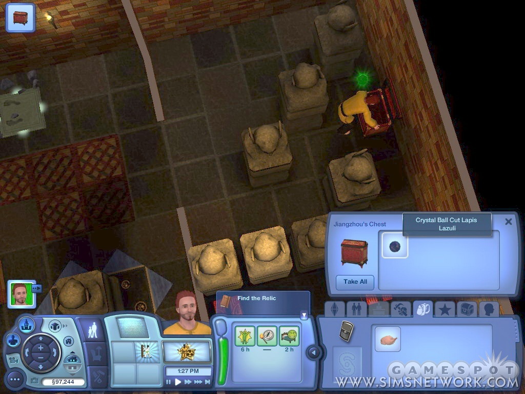 Our own outing began with a trip to China to start training in the ways of the warrior and maybe get some really good egg rolls. Landing at any foreign location will start your sims out in front of the adventure board--a bulletin board where tomb-raiding missions are posted. We quickly found our first mission: a notice to recover an artifact from a local tomb. Once we accepted the quest, the new adventure journal appeared onscreen and let us simply click on the name of the quest giver to automatically route our sim there by bicycle. In no time, we were being briefed on the mission by the crabby old man who posted the notice (and also automatically added him to our sim's contact list to develop as a potential friend--or enemy--later).