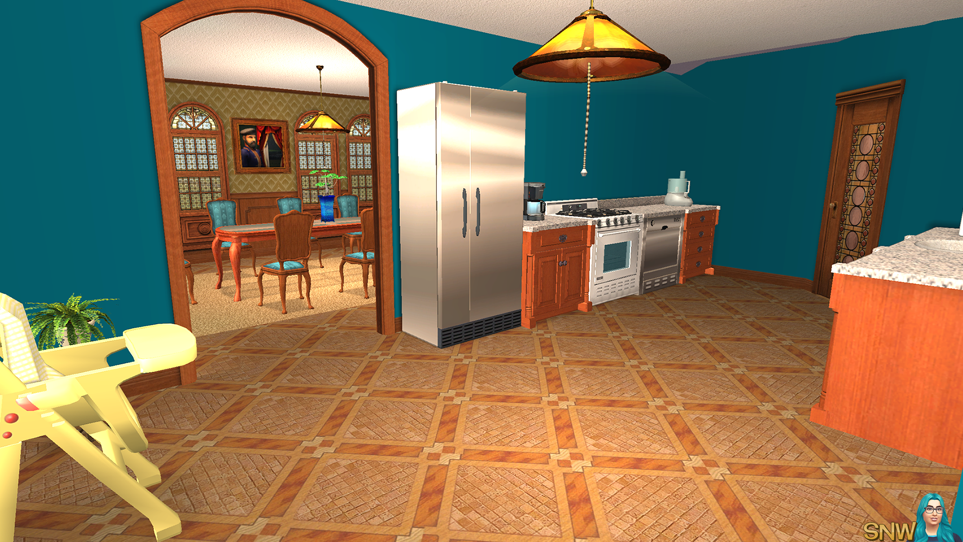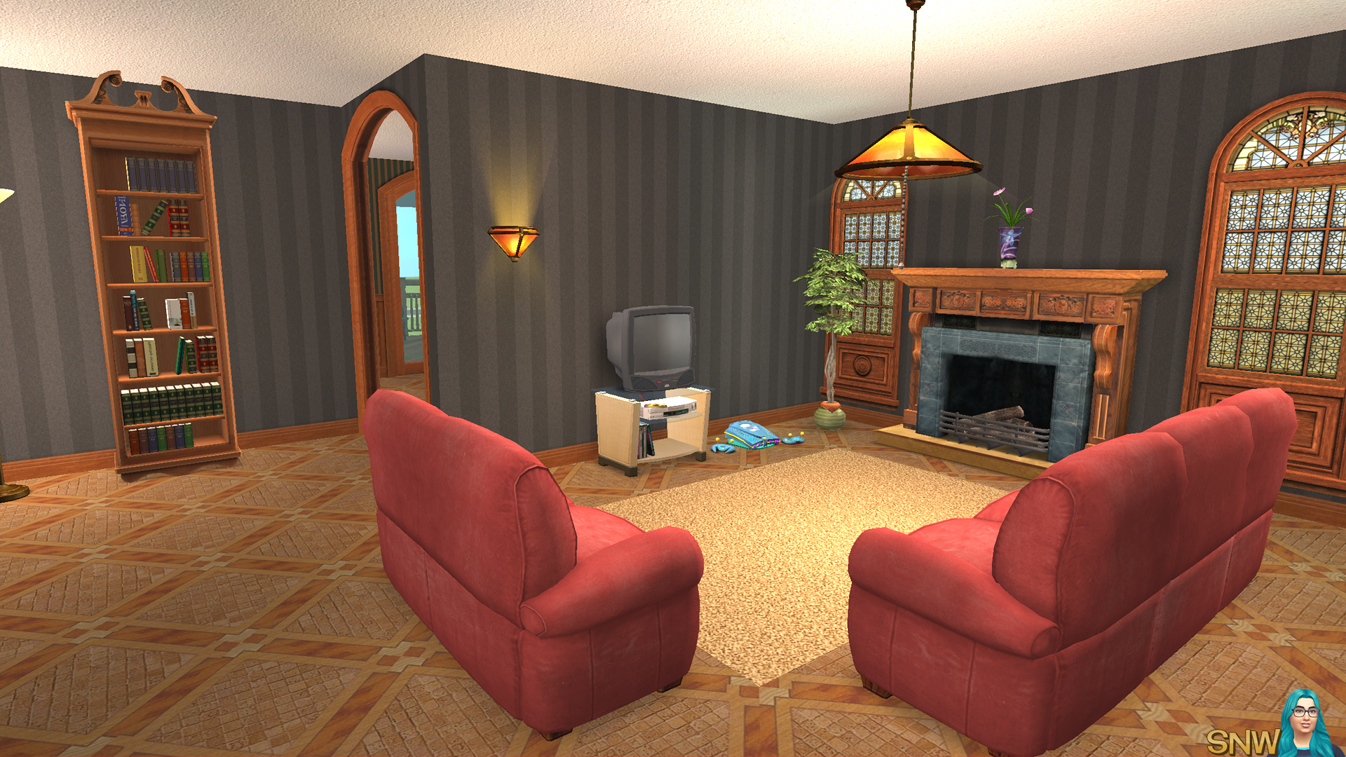 The original house only used the base game. And while you can't properly see in The Sims 2 which item is from which pack, I do remember from most items which pack they came with. So I think this house only uses basegame, even with all the furnishings. I kind of wanted to stay in the 2004 vibe. Honestly, the base game had some pretty good stuff!