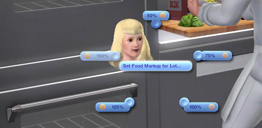 You’ll also want to set up what the mark-up is going to be.  Higher quality food warrants a higher price tag but even that might not be enough to keep Frugal Sims happy.
